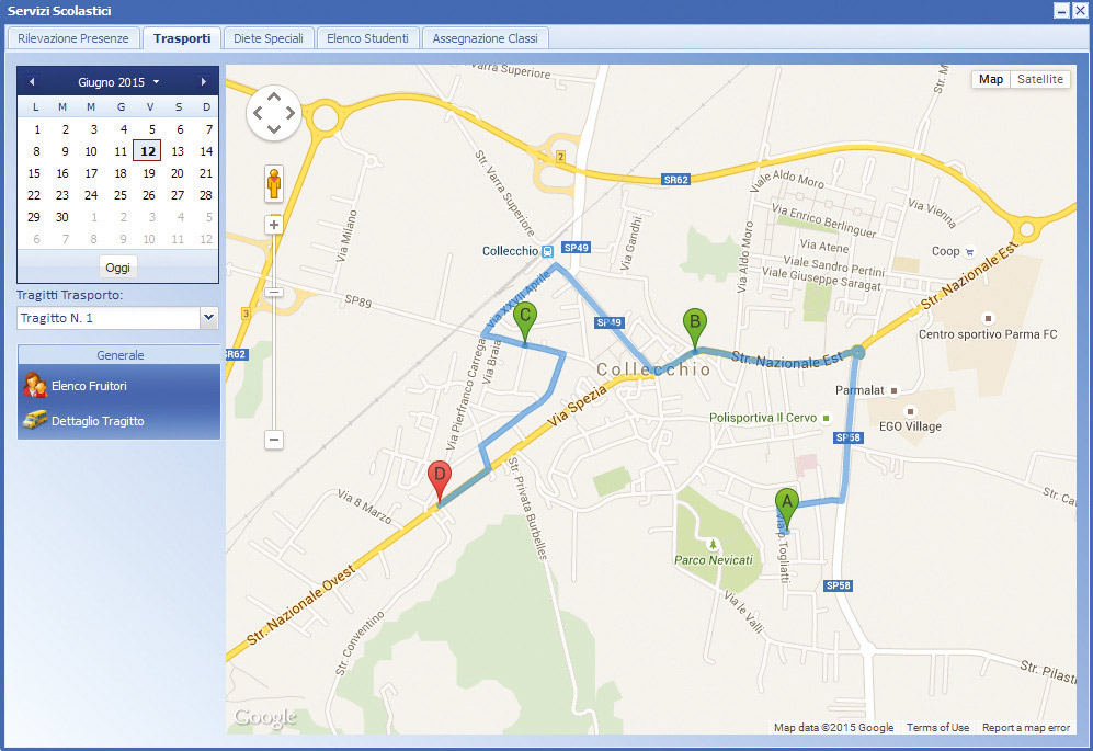 Organizzazione intelligente e tracciabilità in tempo reale. Il modulo consente di configurare tragitti, corse e fermate, creare mappe geografiche e associare i fruitori. È disponibile anche la geolocalizzazione GPS degli scuolabus, con app per i genitori e gestione dei costi della flotta.
